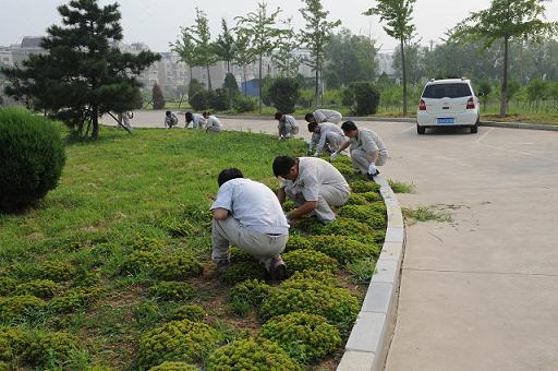 會后,一場黨員帶頭、員工共同參與的集體除草活動熱火朝天地開展起來。大家有的用手拔、用的用鐮刀割、有的用袋裝、用的用車推,忙的不亦樂乎??煺邘椭?,年輕者幫助年長者,大家一邊勞動,一邊互相問候,其樂融融。表面的雜草連根拔起,死角區(qū)域進行了二次清除。烈日炎炎下,盡管很多人的臉上流下了晶瑩的汗滴,但他們依然在繼續(xù),沒有停歇。功夫不負有心人,經(jīng)過2個小時的辛勤勞動,責任區(qū)域內(nèi)的雜草、雜物被徹底清除。當大家回望整潔有序的草坪時,心中無比喜悅。